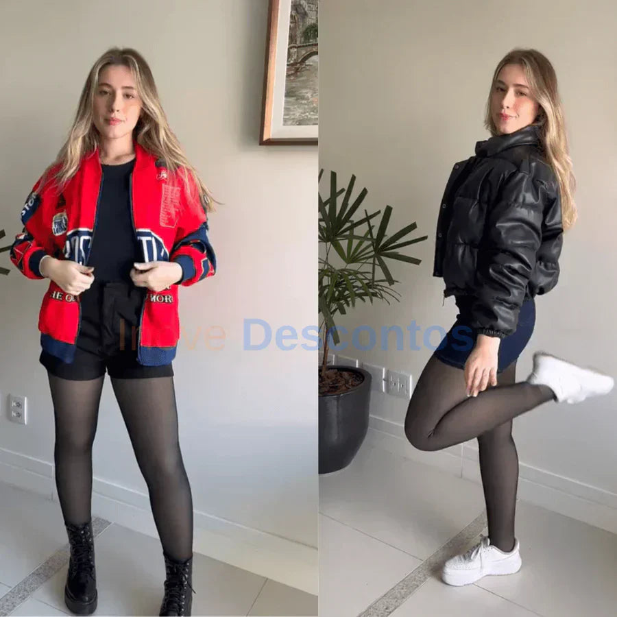 Esse Kit de Meia-Calça é perfeita para usar com saias, vestidos e shorts sem passar frio! Ela imita o efeito fio 15, mas você estará vestindo uma calça macia e quentinha!