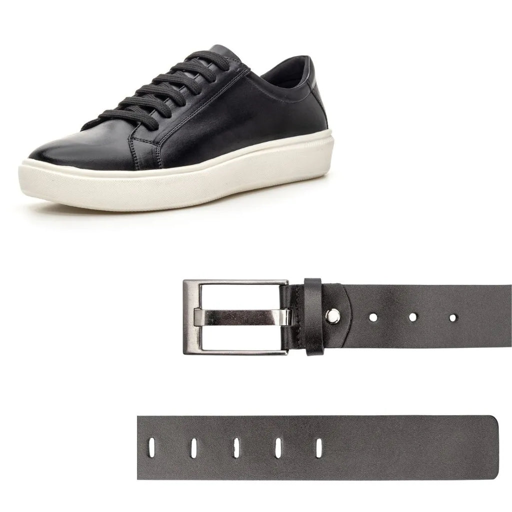 Conforto e Praticidade para Acompanhar Seu Ritmo O sapatênis preto foi projetado para proporcionar conforto o dia todo, com palmilha anatômica acolchoada e sola flexível, que absorvem impactos e garantem bem-estar a cada passo. O design ajusta-se perfeitamente aos seus pés, oferecendo suporte essencial para o cotidiano agitado. O cinto, por sua vez, complementa com sua durabilidade e qualidade, mantendo sua aparência alinhada e prática durante todo o dia.