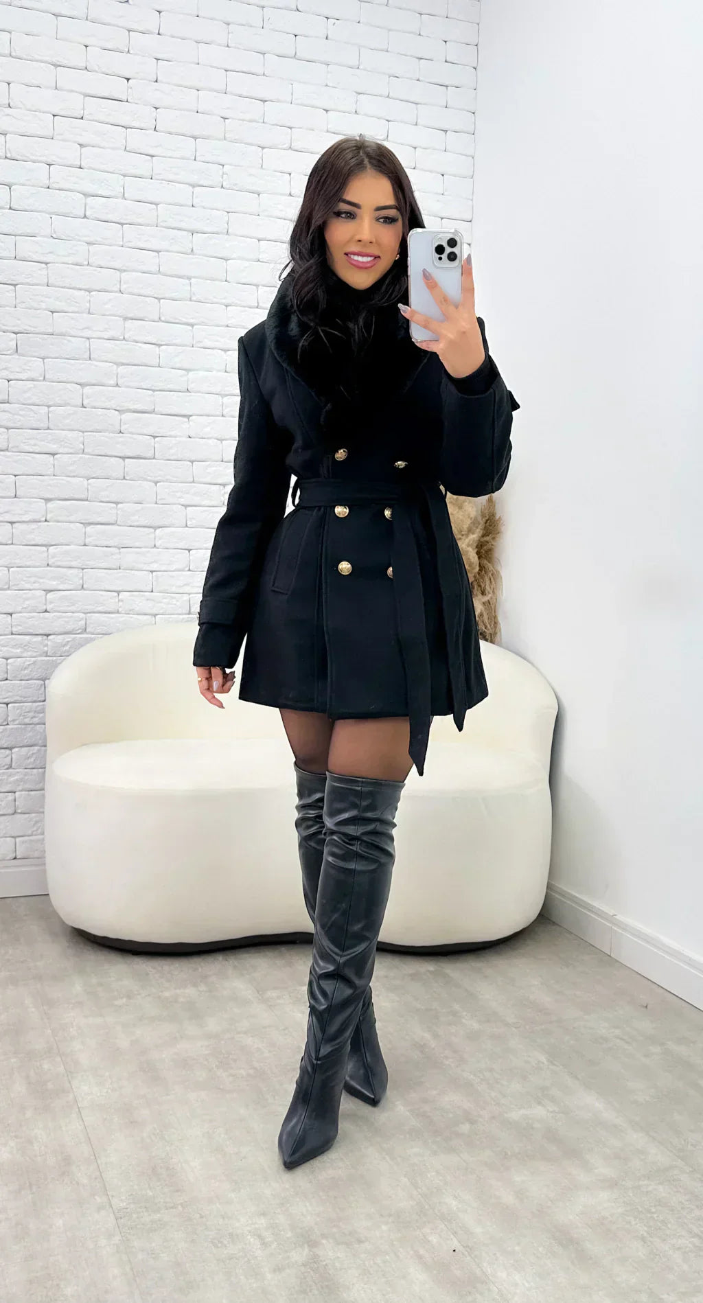 🌸 Gola removível: Versatilidade para adaptar ao clima e estilo. 🌸 Forrado por dentro: Mais conforto e proteção térmica. 🌸 Fechamento por botões: Estilo clássico e funcional. 🌸 Bolsos funcionais: Praticidade sem abrir mão da elegância. 🌸 Acompanha faixa para amarração: Valoriza a silhueta com sofisticação.