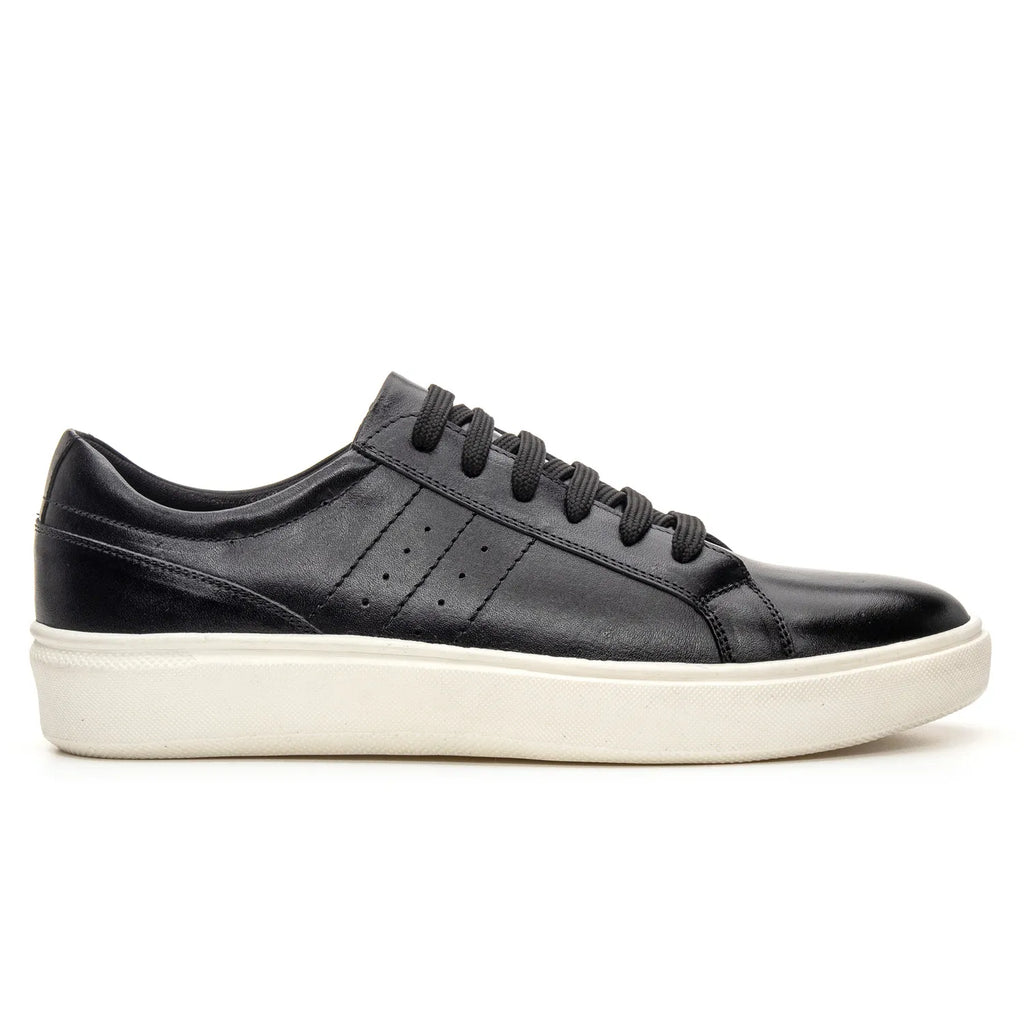 O couro preto confere ao tênis um visual atemporal que combina facilmente com qualquer estilo. Seja em um look casual com jeans ou algo mais alinhado para o trabalho, o calçado preto em couro adapta-se a diferentes ocasiões e ambientes. Sua versatilidade permite que você o use tanto em situações informais quanto em eventos que exigem um toque mais elegante. Com este tênis, você nunca errará na escolha do seu outfit.